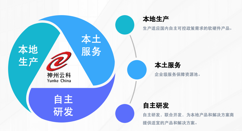 紧跟国家自主可控战略,神州15vip太阳通过“本地生产、本土服务、自主研发”的战略路径,打造自主品牌、生产自主产品,为合作伙伴提供神州数码自主品牌、自主知识产权的云基础设施产品、服务及解决方案。
